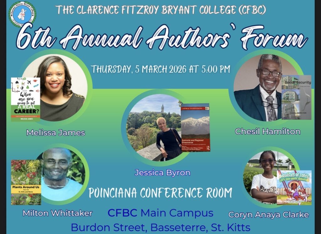 Basseterre, St. Kitts: The Clarence Fitzroy Bryant College (CFBC) is set to host its sixth Authors’ Forum “In Celebration of Books” on Thursday, 5th March 2026 at 5:00 pm in the Poinciana Conference Room at the CFBC main campus on Burdon Street, Basseterre. Admission is free.